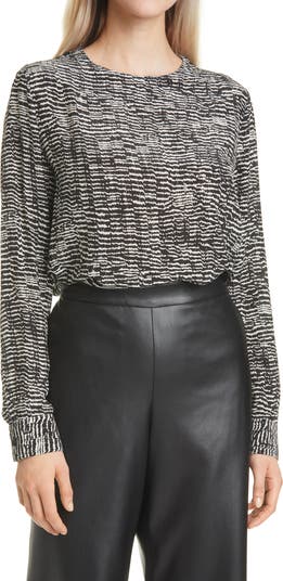 A wardrobe staple for transitional weather is cut from a soft silk-enriched blend in a neutral print for versatile styling.