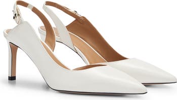 Update your desk-to-dinner selection by adding this d'Orsay pump to the mix, shaped from smooth leather and elongated by a pointy toe.