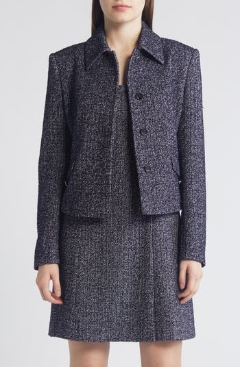 Keep your 9-to-5 look polished in this versatile jacket tailored in a fitted silhouette from cotton-enriched tweed.