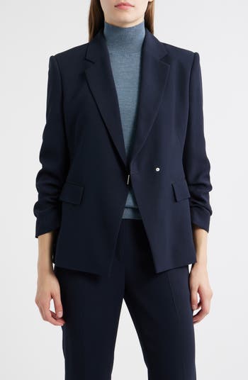 A slim fit lends timeless sophistication to this structured blazer finished with front flap pockets and notched lapels.
