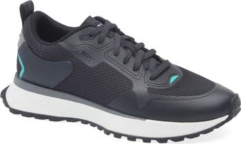 A low-top profile and a serrated grip sole define this sporty sneaker crafted with durable synthetic overlays and breathable mesh.