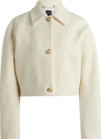 Soft chevron stripes enliven this woolly jacket designed in a cool cropped fit.