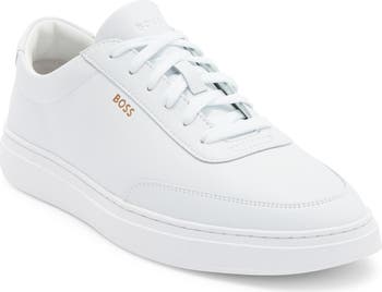 Smooth leather elevates the everyday appeal of these sporty lace-up sneakers finished with metallic branding and set on a thick sole.