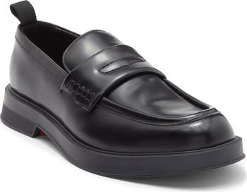 An apron toe and penny keeper strap add timeless appeal to a classic loafer rendered in smooth leather and grounded on a chunky rubber sole.