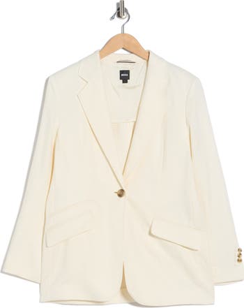 Bring a warm-weather alternative to your tailored wardrobe with this fresh linen-blend blazer in a clean creamy hue.