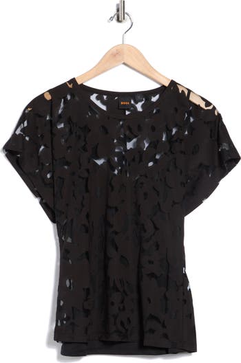 A floral pattern sweetens the look of this semi-sheer top lined with a coordinating camisole.