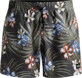 Lightweight, quick-drying fabric made of recycled fibers keeps you moving comfortably in and out of the water in volley-length swim trunks designed with a soft, stretchy lining.