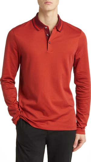 Patterned tipping frames the rib collar of a polo made with breathable cotton in a two-tone pattern that looks smart and distinctive in any setting.