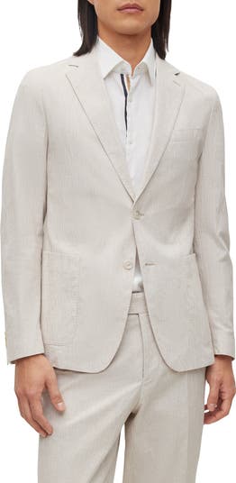 A hint of stretch enhances the comfort and fit of a signature sport coat crafted from cotton and linen for a crisp yet breathable feel with each wear.