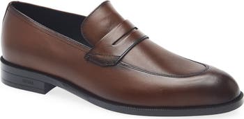 An apron toe and penny keeper strap add timeless appeal to a classic loafer rendered in smooth leather.