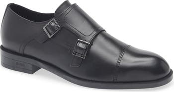 A cap toe adds versatile appeal to a vintage-inspired monk shoe rendered in supple leather.