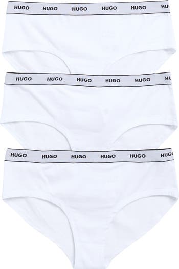 A wide elastic waistband offers comfort and support with this trio of hipsters cut from stretch-enhanced cotton.