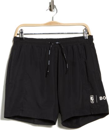 Showcase your adoration for the NBA with these lightweight quick-drying swim trunks styled with welt pockets.
