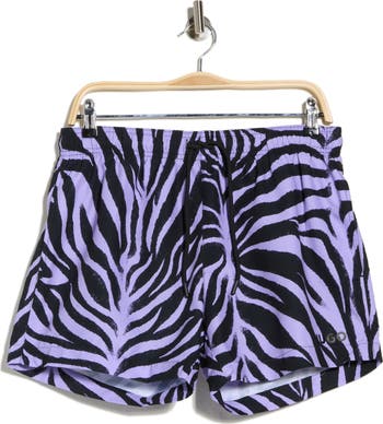 Bright zebra stripes gallop up and down swim trunks made of lightweight, quick-drying fabric that stays comfortable in and out of the water.