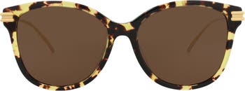 Gleaming temples highlight the sides of Havana-patterned sunglasses fashioned in a retro round silhouette.