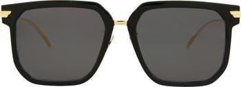 Gleaming goldtone temples with signature branding lends designer style to square sunglasses fitted with CR-39 lenses.
