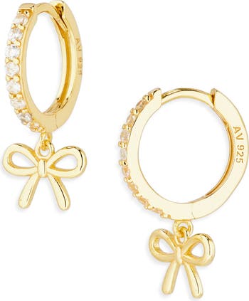 Bow Dangle CZ Pavé Huggie Hoop Earrings