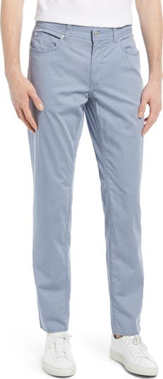 Lightweight stretch cotton with a diamond-weave effect offers easy care and comfort to versatile straight-leg pants in a five-pocket cut for casual appeal.