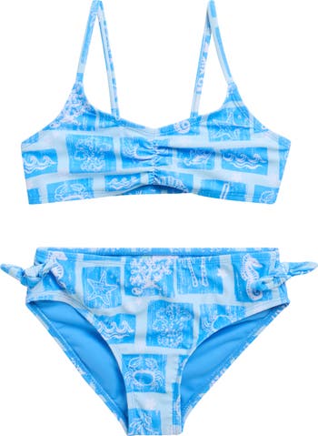 They’ll love to splash and play in this two‑piece swimsuit finished with a sea‑inspired postal print.