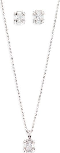Bridesmaid Halo Emerald Cut Cubic Zirconia Pendant Necklace