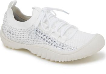 Glam up your walk with this rhinestone-embellished knit slip-on sneaker grounded by an arch-supportive footbed and grippy all-terrain sole.