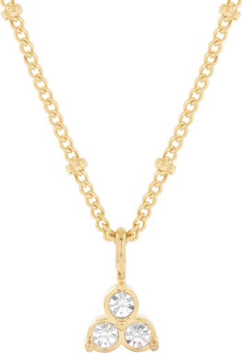 Three faceted crystals sparkle on the pendant of a dainty chain necklace plated in 14-karat gold.
