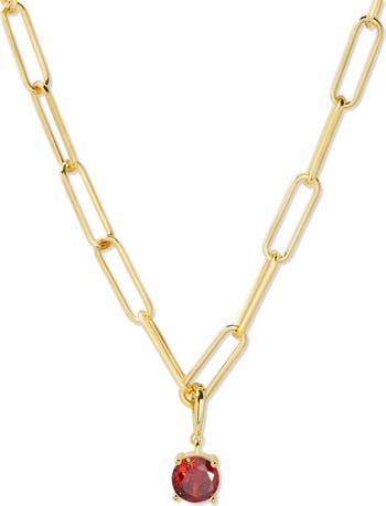 Melrose Birthstone Pendant Paper Clip Chain Necklace
