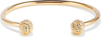 Plated in gleaming 14-karat gold, this knot-trimmed cuff will bring elegant anytime shine to your wrist.