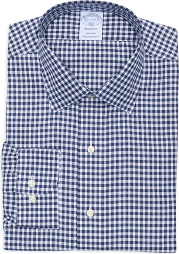Crease-resistant cotton twill woven in a classic gingham print keeps you looking polished in a dress shirt styled to elevate any semiformal outfit finished with neatly rounded cuffs.