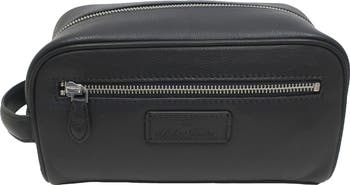 Multiple pockets ensure you have a spot for all your needs within a signature dopp kit shaped from softly grained leather.