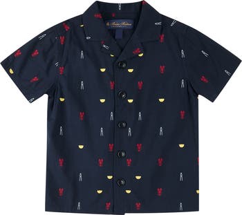 All your child needs for the lobster feed (besides a bib and an appetite) is this relaxed and whimsically printed camp shirt made from a lightweight cotton blend.