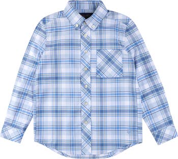 A cool-hued plaid refreshes a classic oxford-style cotton sport shirt made with a button-down collar and handy chest pocket.