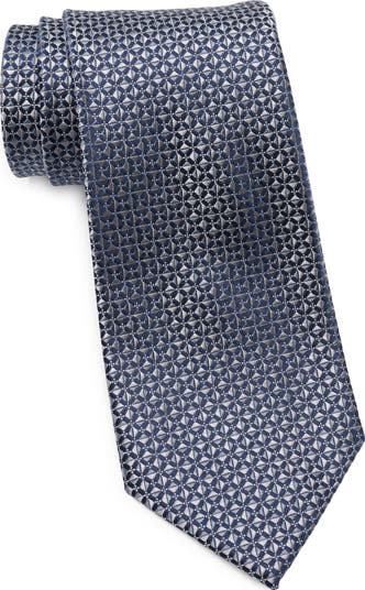 Intricate neat geometric jacquard weaves texture and dimension into this dapper tie made from lustrous silk.