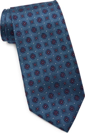 Intricate geometric floral jacquard weaves texture and dimension into this dapper silk-rich tie.