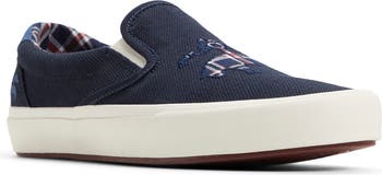 The brand's signature logo is cast in a handsome check on a casual slip-on sneaker grounded by a grippy rubber sole.