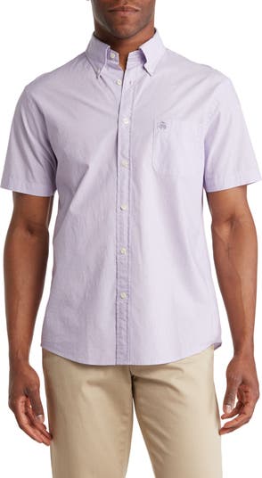 A stay-put button front collar keeps you looking sharp in a casual short sleeve shirt crafted from breathable cotton, perfect for celebrating warming weather.