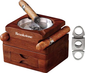 Perfect for gifting to those who enjoy their vices, this cigar ashtray and whiskey tray come with a cigar cutter to complete the set.