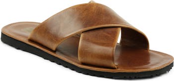 This contemporary leather slide sandal is a casual footwear basic that will update any outfit you pair it with.