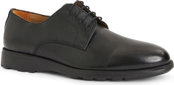 A sporty rubber sole keeps you comfortably grounded in this plain-toe derby lined with breathable leather.
