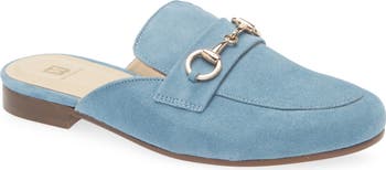 Gleaming bit hardware elevates this soft suede mule fashioned in an apron-toe silhouette with a lightly cushioned footbed and low block heel.