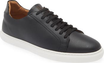 A crisp leather upper refines this dapper lace-up sneaker resting on a springy rubber cupsole for a seamless fusion of luxury and comfort.