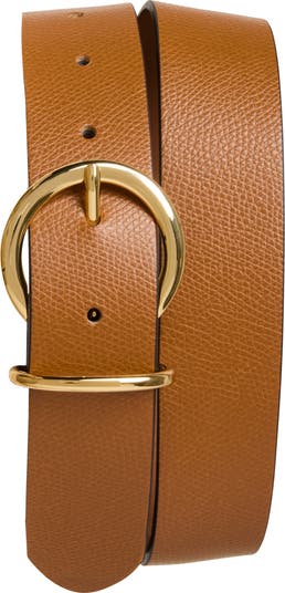 A polished buckle fronts an Italian-made belt crafted from rich pebble-grain leather.