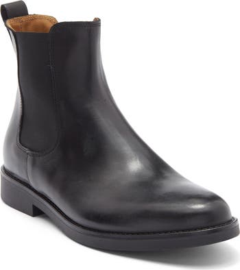 An almond furthers the streamlined profile of an Italian-made Chelsea boot featuring a rich leather upper and breathable lining for luxe comfort.