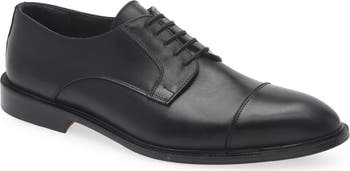 Exude polished style in this classic cap-toe derby crafted in Italy from smooth leather and lifted by a low block heel.