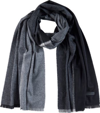 Bundle up when the frigid temps creep in with this silk-cashmere blend scarf woven in a tonal mixed pattern and finished with frayed trim.