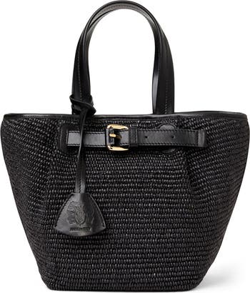 A gleaming buckled strap and soft pleats define the front of a polished mini leather bag topped with a variety fo straps for carrying options.