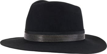 Complete your fall ensembles with this modern wool fedora that is decorated with a metal micro ball hatband.