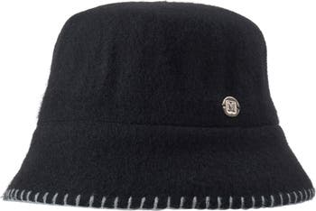 Whipstitching at the brim adds an extra touch of retro charm to this felted wool bucket hat embellished with a logo medallion.