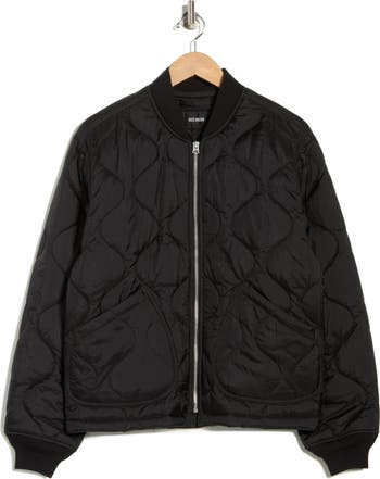 Show off timelessly cool style in this lightly insulated ripstop nylon bomber jacket framed by roomy patch pockets and sporty ribbed trim.