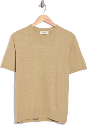 A textured cotton weave brings a subtle design and lasting comfort to a casual crewneck T-shirt designed for everyday wear.